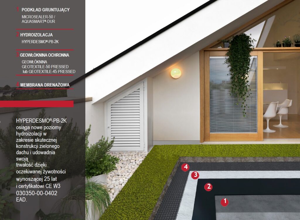 Przykładowy system hydroizolacyjny z aplikacją HYPERDESMO dla zielonego dachu